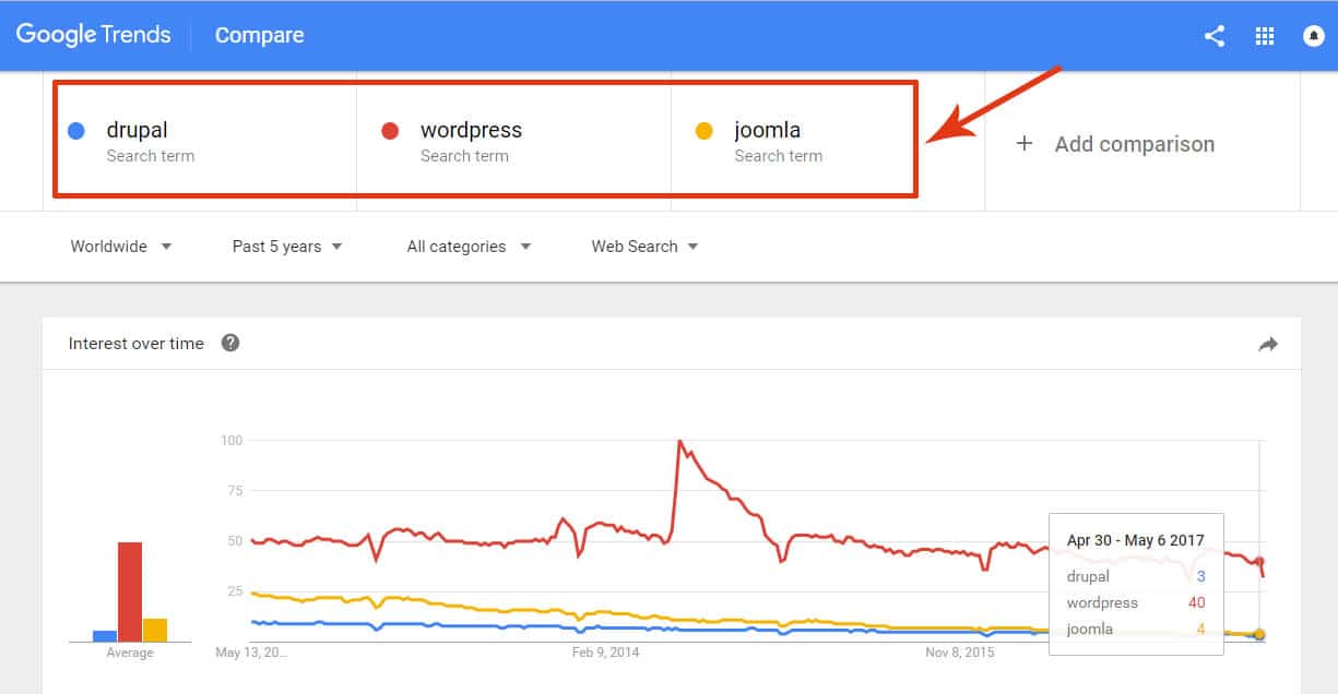 As per Google Trends, people prefer WordPress Over Joomla and Drupal