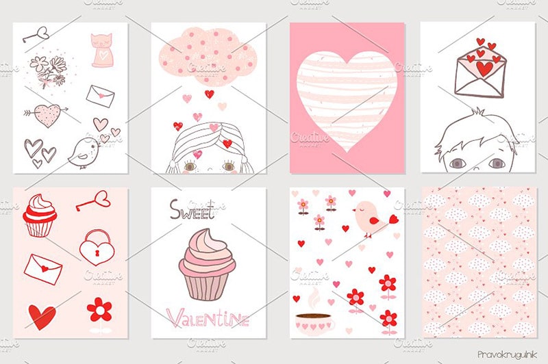 ● separate EPS, PSD, JPG (300 dpi) files with Valentine’s Day cards