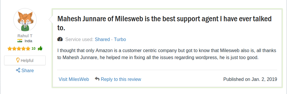 See what their users are saying about their experience with MilesWeb WordPress hosting. Here is a collection of their reviews that we’ve got from HostAdvice.