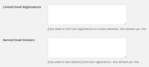 Limited Email Registration options will countenance you to limit site or user registration to the email address from specific domains, then you can add those domains here. This is, for the most part, useful if you only want to allow people from your own organization to register and create users or sites. Similarly, you can also ban certain domains from registration.