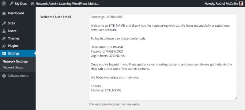 On the Network Setting screen, you will see Your Site Title and admin email address. Fill these out as you did earlier in the network setting.