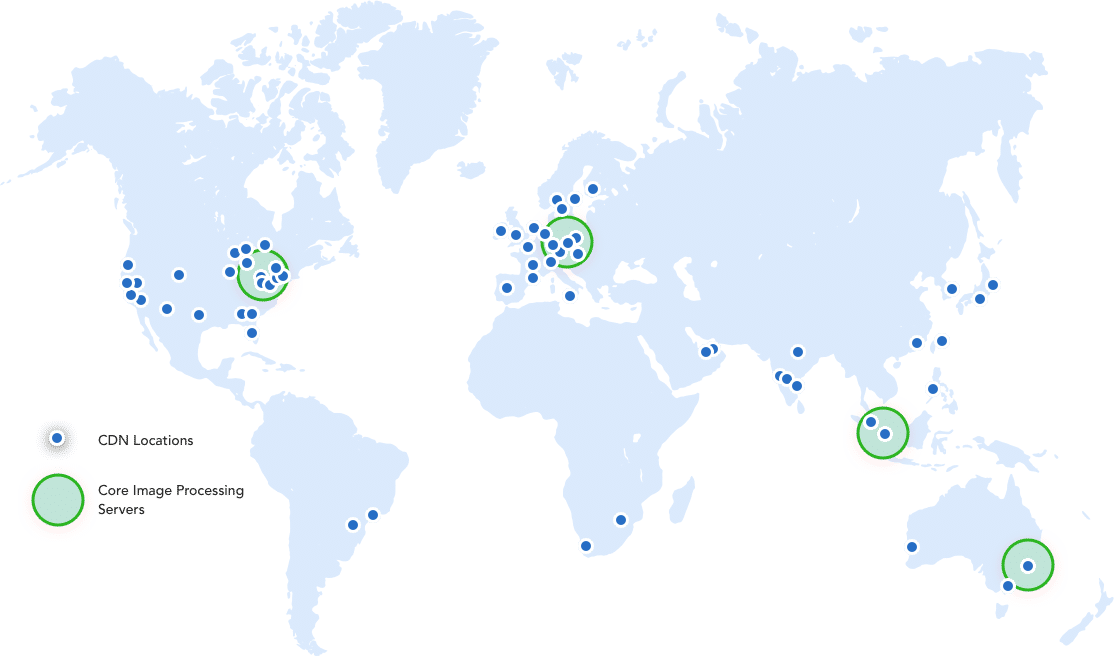 ImageKit comes integrated with one of the best CDNs currently available – Amazon CloudFront with over 150 delivery nodes across the globe. All the images and files delivered via ImageKit are delivered through this CDN that ensures that images will be loaded in milliseconds on every device. Additionally, ImageKit processes our images in 4 locations across the globe (and keeps adding more with time) to ensure quick processing.